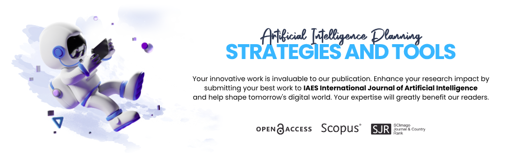 Submit your paper now through Online submission ONLY. Kindly please download the IJ-AI template in MS Word or LaTeX. Submission for publication in this journal presumes that the paper is not being considered for publication elsewhere and is not under review by any other publication. A submitted paper should be an original work, and should not have been presented or published previously.All papers undergo a thorough evaluation process while following all ethical guidelines to maintain the highest publishing standards. The IJ-AI Team strictly review suitability, originality of manuscripts for publication. Publication integrity is one of the principle responsibilities we take. Our Editors maintain transparency of research, assess manuscript for scientific value, ensure that content is free from any manifestations of discrimination, and evaluate information objectively without any conflict of interests. Papers are published in the bimonthly journal (Feb, Apr, Jun, Aug, Oct, and Dec). If you have any problems submitting your papers, please contact us at email: ijai@iaesjournal.com, cc: editor@iaesjournal.com.